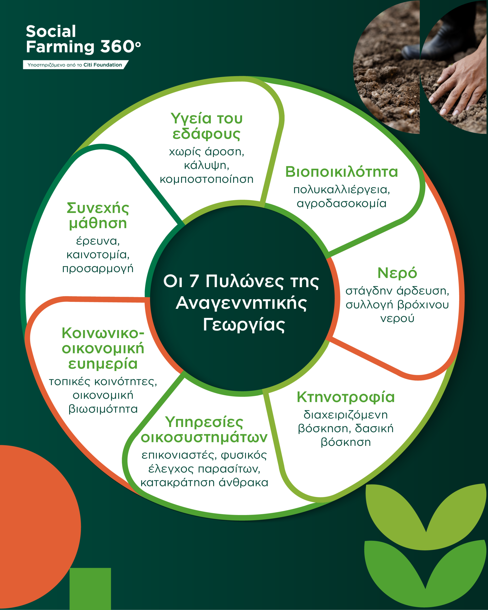 Ο οργανισμός Νέα Γεωργία Νέα Γενιά υλοποιεί το πρόγραμμα “Social Farming 360”, με την πλήρη υποστήριξη από το Ίδρυμα Citi. Σε στενή συνεργασία με τη Γενική Γραμματεία Αντεγκληματικής Πολιτικής του Υπουργείου Προστασίας του Πολίτη, και με τη συμμετοχή της ActionAid και της Πύλης Ελευθερίας, το πρόγραμμα στοχεύει στην ενίσχυση της επισιτιστικής ασφάλειας, την ανάπτυξη δεξιοτήτων για ευάλωτες κοινωνικές ομάδες και την προώθηση της παραγωγής κοινωνικών γεωργικών προϊόντων.