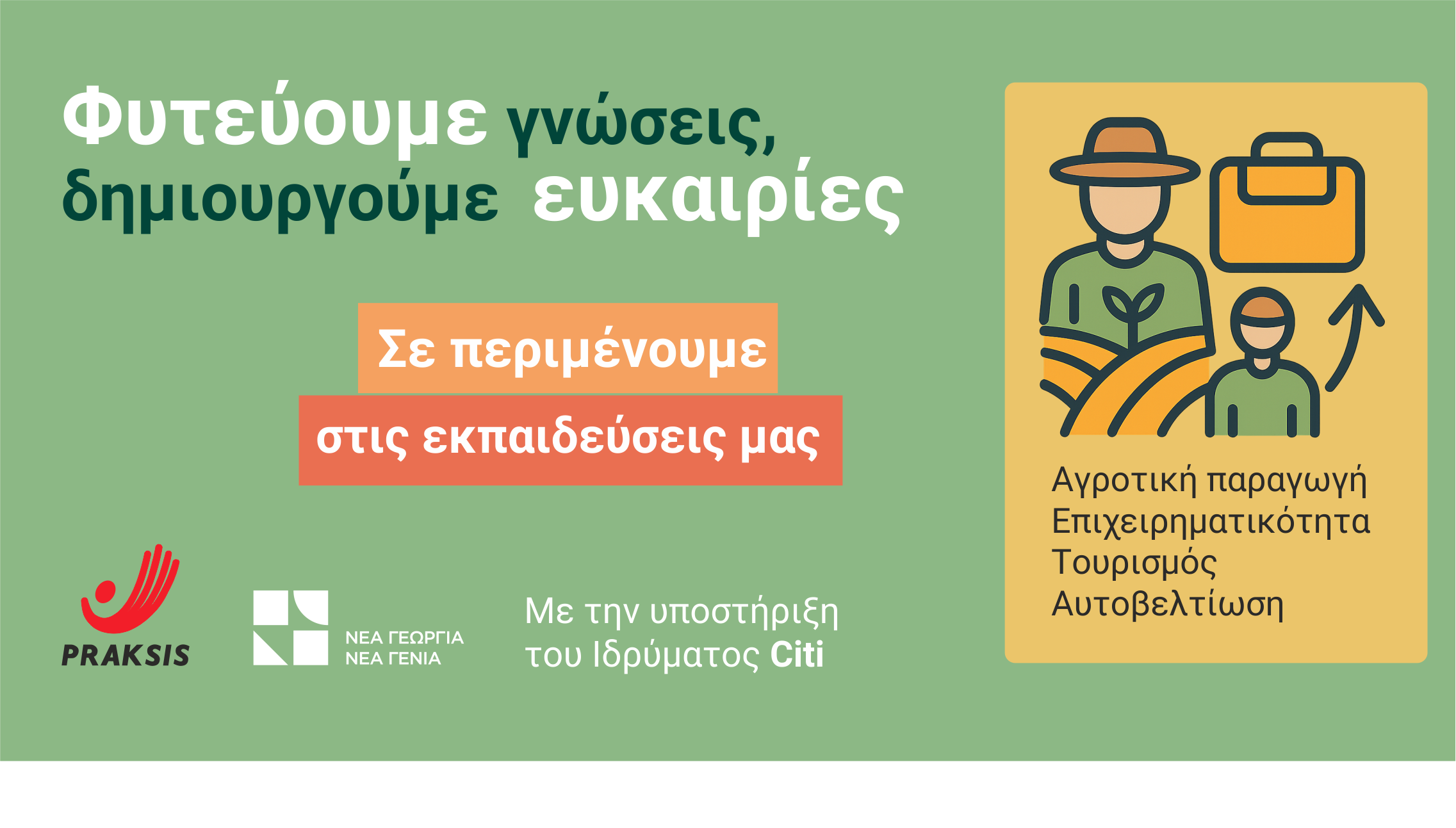 New Agriculture New Generation, in collaboration with PRAKSIS and with the support of the Citi Foundation, is implementing, from February 2025 and for a duration of two years, the program “Cultivating Hope – Harvesting Change Project (CH-HC)”, under the central message “Planting Knowledge, Creating Opportunities.”