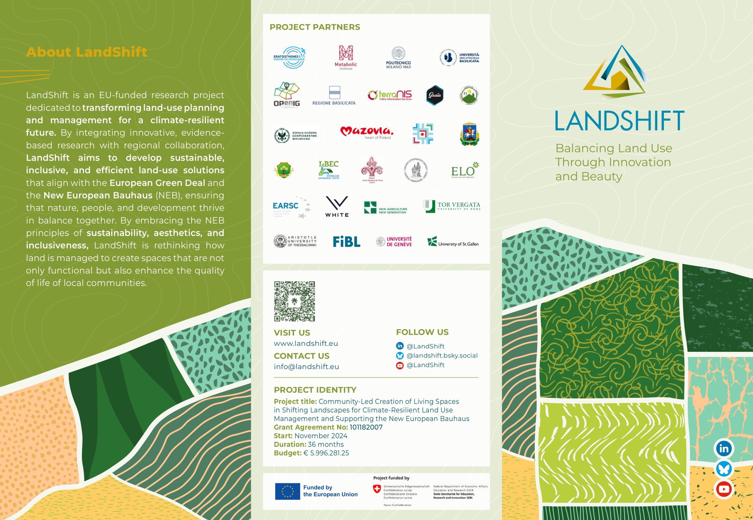 LandShift is a pioneering EU-funded research project aimed at transforming how land is managed across Europe. Through evidence-based research and regional collaboration, it develops inclusive and efficient land-use strategies that align with the European Green Deal and the New European Bauhaus, helping nature, communities, and regional development flourish together.
