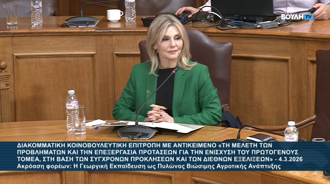 Στις 4 Μαρτίου 2026, πραγματοποιήθηκε συνεδρίαση της Διακομματικής Κοινοβουλευτικής Επιτροπής με αντικείμενο «τη μελέτη των προβλημάτων και την επεξεργασία προτάσεων για την ενίσχυση του πρωτογενούς τομέα, στη βάση των σύγχρονων προκλήσεων και των διεθνών εξελίξεων».